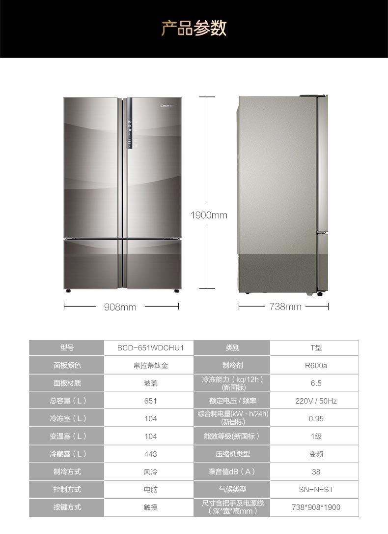 卡萨帝四门无霜冰箱BCD-651WDCHU1